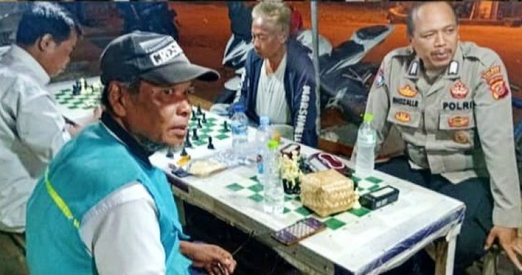 Kegiatan ngawangkong yang dilakukan Aiptu Nono Haryono dan Bripka Ghojali Rahman bersama warga petugas ronda di Poskamling Perum PDP Desa Rengasdengklok Utara Kec.Rengasdengklok Kab.Karawang