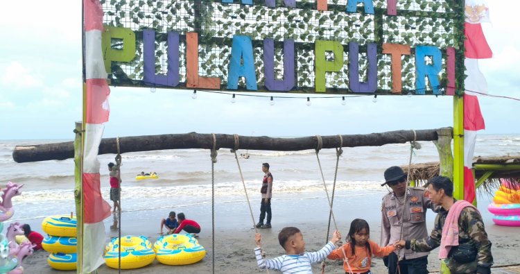 Polres Karawang - Polsek Batujaya Polres Karawang Polda Jabar, Anggota Polsek Batujaya Bripka Ahmad Sanjaya bersama Bripka Yogi Aditia Suherman dan Bripka Sigit Shinto Wibowo melaksanakan Patroli dan Pengawasan di tempat wisata Pantai Pulau Putri Cikeong di Dusun Karangmulya RT 013/004 Desa Segarjaya Kecamatan Batujaya Karawang. Minggu (4/1/2026).