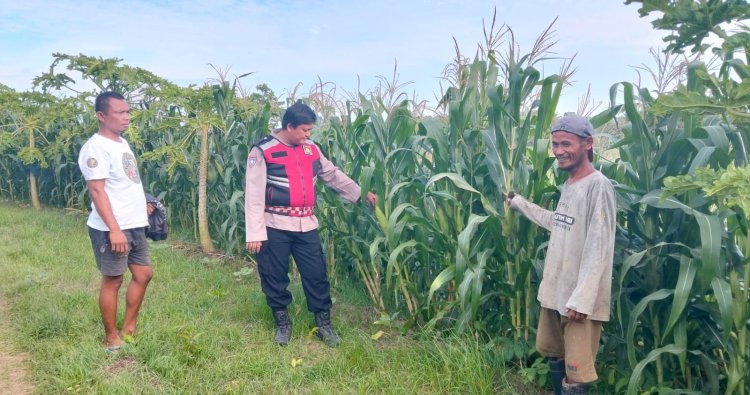 Polres Karawang - Polsek Batujaya Polres Karawang Polda Jabar, Anggota Polsek Batujaya Polres Karawang Polda Jabar Aipda Ade Suryana dan Unsur Masyarakat dan Pemerintah Desa Kutaampel Kecamatan Batujaya melaksanakan Monitoring dan Pengecekan Pasca Penanaman Jagung. Kamis (13/11/2025)