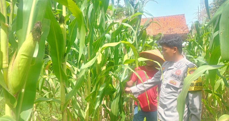 Polres Karawang - Polsek Batujaya Polres Karawang Polda Jabar, Anggota Polsek Batujaya Polres Karawang Polda Jabar Bripka Sigit Shinto Wibowo dan Unsur Masyarakat dan Pemerintah Desa Kutaampel Kecamatan Batujaya melaksanakan Monitoring dan Pengecekan Pasca Penanaman Jagung. Senin (17/11/2025)