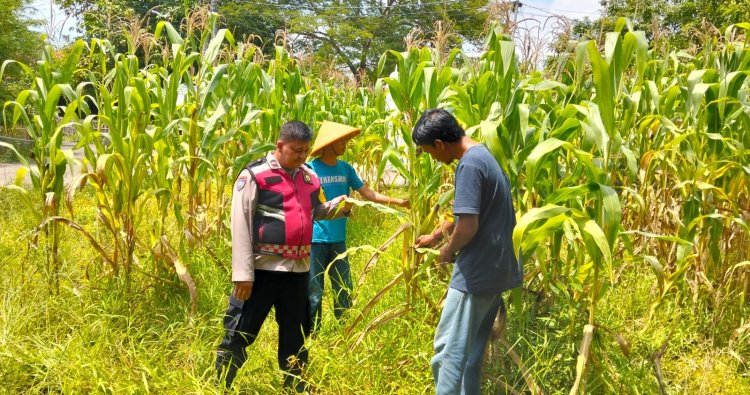 Polres Karawang - Polsek Batujaya Polres Karawang Polda Jabar, Anggota Polsek Batujaya Polres Karawang Polda Jabar Aipda Ade Suryana dan Unsur Masyarakat dan Pemerintah Desa Kutaampel Kecamatan Batujaya melaksanakan Monitoring dan Pengecekan Pasca Penanaman Jagung. Senin (1/12/2025)