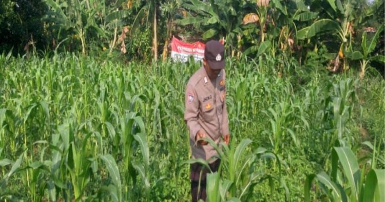 "Saya anggota Polsek pedes Aipda Tri Prastowo Bripka Jhon Dayat, monitoring tanaman jagung di wilayah desa Jatimulya yang baru berusia 35 (tiga puluh lima hari) hari sudah mulai tumbuh dalam program ketahanan pangan nasional masyarakat mandiri, " Ujar Bripka Jhon Dayat