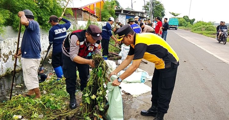 Polres Karawang - Forkopimcam Kecamatan Rengasdengklok bersama Pemerintah Desa Rengasdengklok utara dan masyarakat melakukan kerjabakti membersihkan saluran air dan Gorong-gorong, Rabu (14/01/2026)