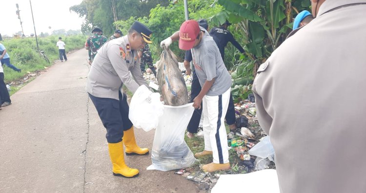 Kapolsek Cikampek Kompol Aji Setiaji sesuai arahan pimpinan dalam hal ini Kapolres Karawang AKBP Fiki Novian Ardiansyah , gelar kegiatan kerjabakti bersih bersih sampah.