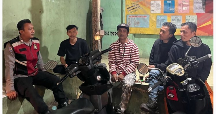 Polres Karawang - Bhabinkamtibmas Polsek Pangkalan, Bripka Dede Saeful Anwar, melaksanakan giat ngawangkong bersama warga di Poskamling Desa Tamansari, Kecamatan Pangkalan, Karawang, Kamis, (12/2/2026) dini hari.