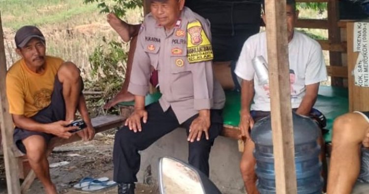 Polres Karawang - Bhabinkamtibmas Polsek Klari Polres Karawang Aiptu H. Karna sambang warga pada siang hari ajak warga ngawangkong tentang Kamtibmas di lingkungan.