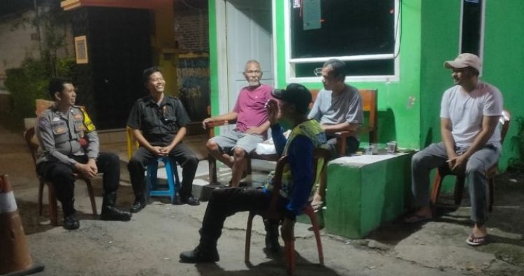 Polres Karawang - Anggota Bhabinkamtibmas dari Polsek Klari Polres Karawang, Aiptu H.M. Ikbal Karis bersama Bripka Hendra Fitrianto melaksanakan kegiatan sambang dan patroli dialogis dengan menyambangi pemukiman warga yang sedang melaksanakan ronda malam di Perum Bumi Kosambi Permai, Kec Klari, Karawang. pada Kamis dinihari (12/02/2026).
