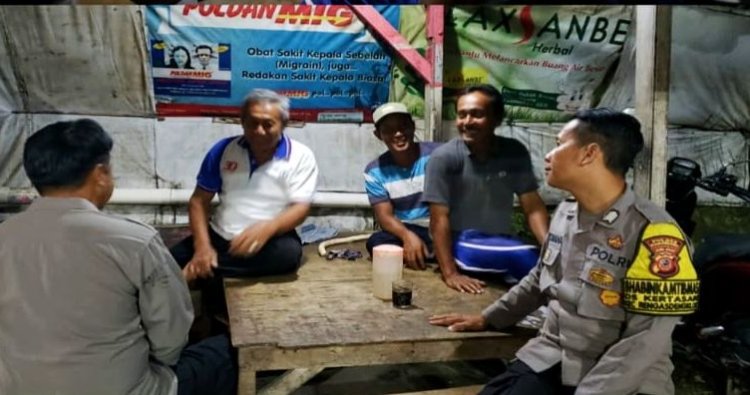 Kegiatan ngawangkong yang dilakukan anggota bhabinkamtibmas Bripka Fazar Lesmana didampingi Bripka Ajat Sudrajat dengan petugas Jaga Satkamling Dusun Krajan timur Desa Amansari, Kec.Rengasdengklok