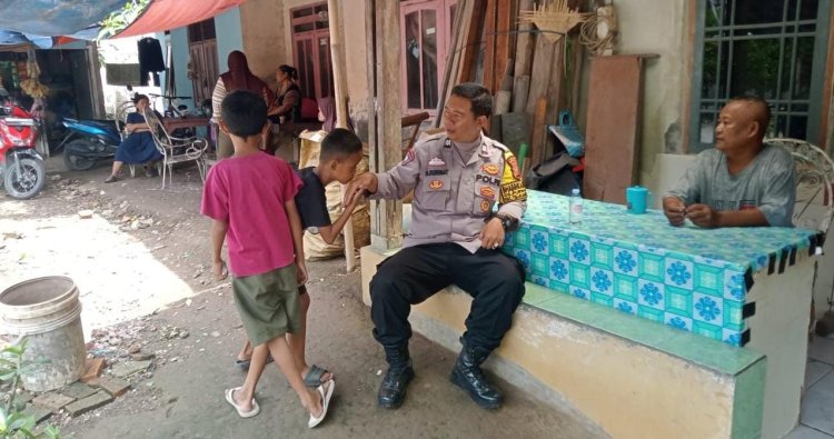 Polres Karawang - Bhabinkamtibmas Polsek Telukjambe Timur, Aiptu Mamat Ruhimat melaksanakan kegiatan sambang secara door to door kepada masyarakat.