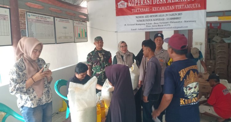 Bhabinkamtibmas, Babinsa, dan kepala Desa Tirtasari, melaksanakan pengamanan dan monitoring pembagian bantuan pangan berupa beras 20 kg dan minyak sayur 4 liter dari Kemensos kepada warga penerima manfaat sebanyak 473 KPM, untuk Bulan Oktober dan November 2025 .