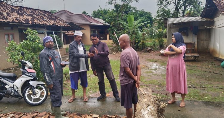 Giat dalam rangka mengukur rumah yang ambruk milik warga Kp. Jengkol RT.002/001 Dusun Labanmulya Desa Kertawaluya Kecamatan Tirtamulya Kabupaten Karawang.