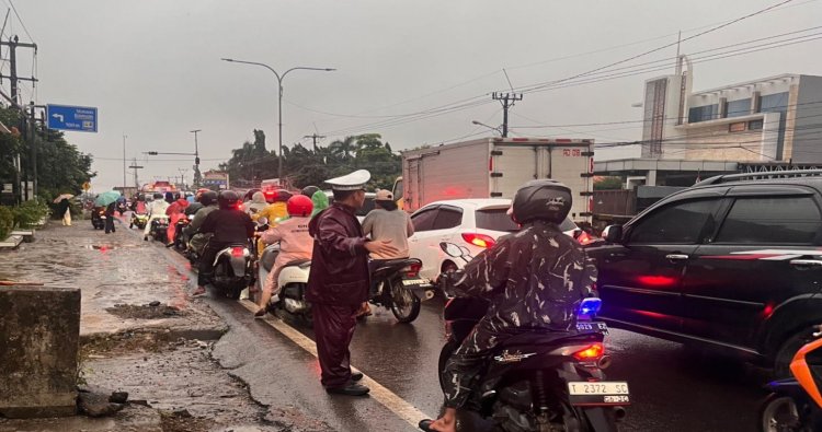 Dalam gatur personil juga berikan himbauan kepada pengendara agar tetap berhati hati karena masih musim penghujan jalanan " ujar kapolsek