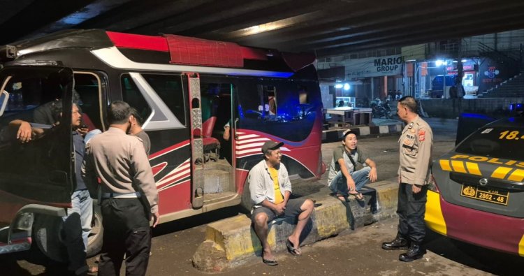 Personil Patroli pesan kamtibmas pemuda nongkrong larut malam di Bawah Fly Over Cikampek, gelaran guna mencegah aksi Premanisme jelang Ramadhan sekaligus