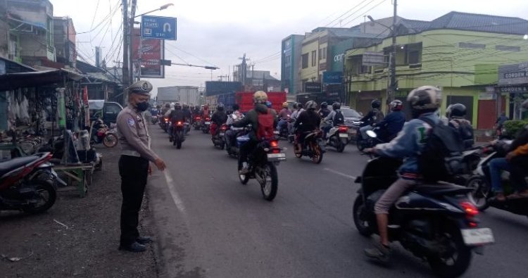 Polres Karawang - Guna memberikan pelayanan prima kepada pengguna jalan demi kelancaran arus lalulintas dan rasa aman masyarakat, Polsek Klari Polres Karawang melalui personil Unit Lantas Polsek Klari melaksanakan giat pengaturan lalulintas .
