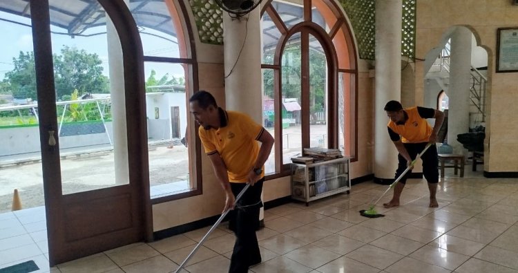Polres Karawang - Dalam rangka menciptakan lingkungan sarana ibadah yang bersih, rapi, dan nyaman, seluruh anggota Polsek Rengasdengklok melaksanakan kegiatan kerja bakti (Korve) di Masdjid Besar (Mabes) Kec.Rengasdengklok Kab.Karawang
