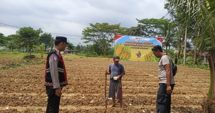 Polres Karawang - Kapolsek Pangkalan, AKP Iwan Budijanto bersama jajaran personel Polsek Pangkalan melakukan monitoring langsung terhadap lahan jagung yang berlokasi di Kampung Jati 3, Desa Jatilaksana, Kecamatan Pangkalan, Kabupaten Karawang, Selasa (3/2/2026).