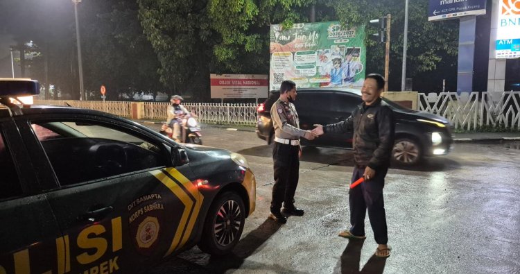 Patroli Polsek Cikampek Pantau Jalur Jalan Jalan A. Yani Cikampek sembari sambang pesan kantibmas Security , kegiatan digelar pada 12 Februari 2026 sekira Pukul 23: 00 WIB guna mencegah tindak kejahatan C3 dan Gukantibmas .