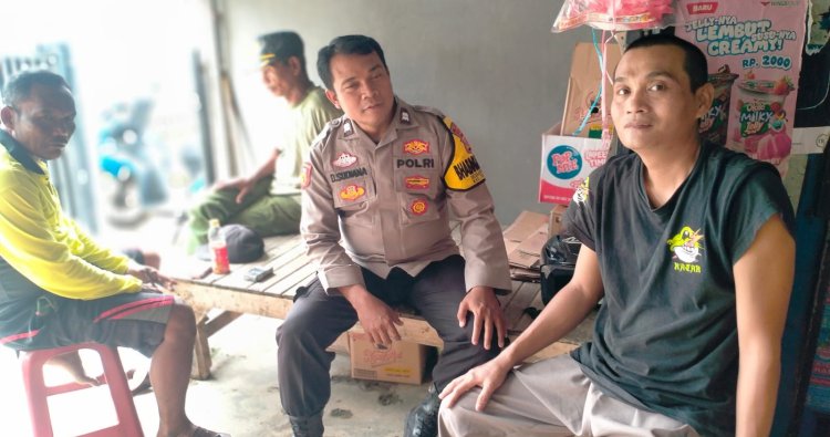 Personil Polsek Cikampek Aiptu Dede Sudiana melaksanakan Jumat Curhat bersama warga desa Kertawaluya kecamatan Tirtamulya Kabupaten Karawang.