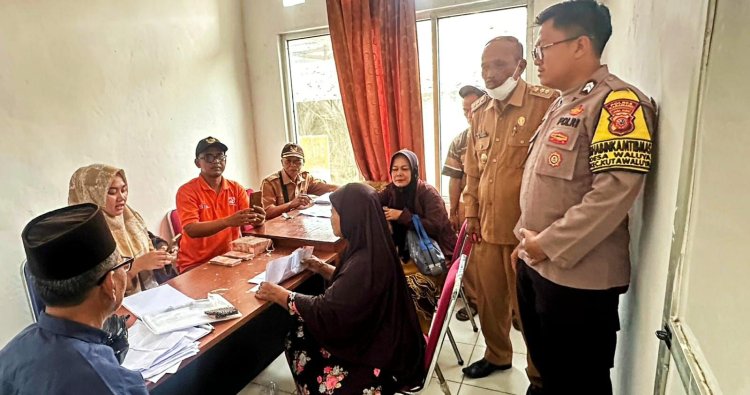 Polres Karawang - Bhabinkamtibmas Polsek Rengasdengklok, Polres Karawang, melaksanakan pengamanan serta monitoring penyaluran Bantuan Langsung Tunai Sementara (BLTS) Kesra Program Keluarga Miskin,