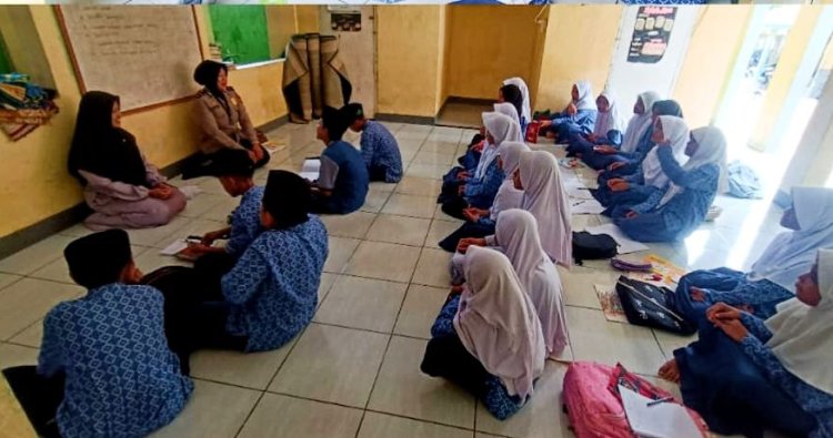 Polres Karawang - Panit Binmas Polsek Rengasdengklok Polres Karawang Ipda Lilis Nurholisoh S.H memberikan Pembinaan dan Penyuluhan (Binluh) terhadap siswa-siswi Mts Al-Qudwah Kec. Jayakerta Kab.Karawang,