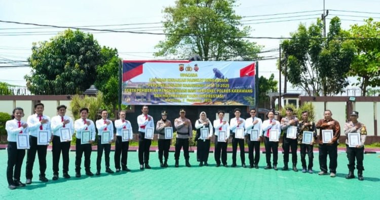 Polres Karawang - Kapolres Karawang Polda Jabar AKBP Fiki N Ardiansyah memberikan penghargaan kepada 40 Personil di jajaran Kepolisian Resor Karawang. Penghargaan ini diserahkan langsung Kapolres dalam pelaksanaan upacara kenaikan pangkat yang berlangsung di Halaman Mapolres Karawang, Pada Rabu (05/11/2025)