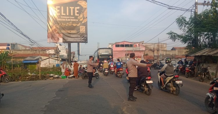 Dalam melaksanakan gatur Lalin pagi, Kapolsek Rengasdengklok Kompol Edi Karyadi dibantu anggota piket fungsi unit samapta Aiptu Deni Awaludin dan anggota lain