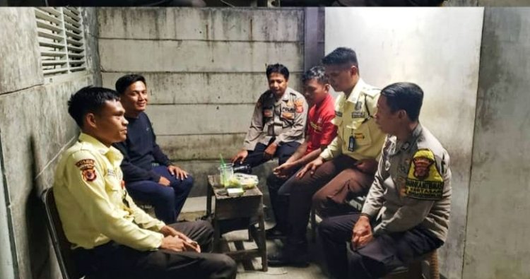 Pada kesempatan patroli sambang dialogis malam hari, anggota patroli menyampaikan pesan - Pesan Kamtibmas kepada Scurity PT Wings untuk bersama Sama Jaga Kamtibmas