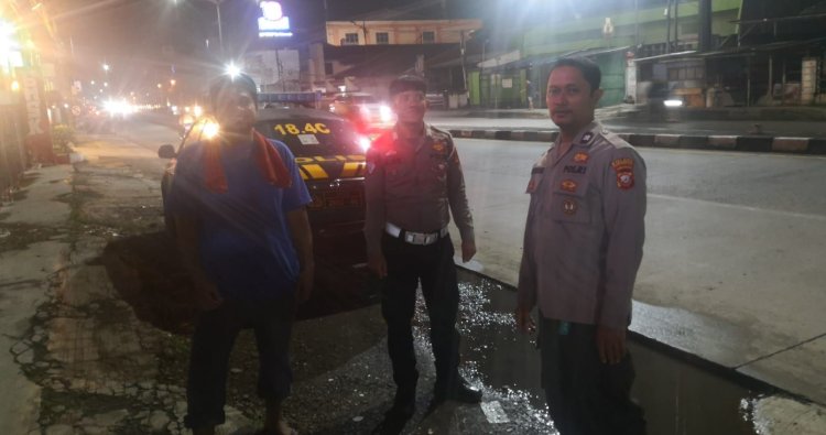 Aiptu Bambang bersama piket patroli Połsek Cikampek, patroli Dinihari dalam rangka antisipasi C3 di Fasilitas Umum dan Jalur Jalan A Yani Cikampek.