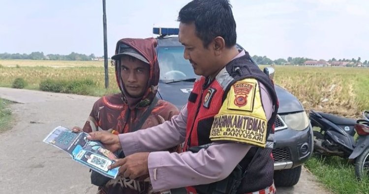 Personil Bhabin Polsek Banyusari melaksanakan patroli dialogis di siang hari sambang warga colling system Route beat dan sosialisasi QR Barcode tentang warga bisa mengadu ke Propam Polri secara langsung.