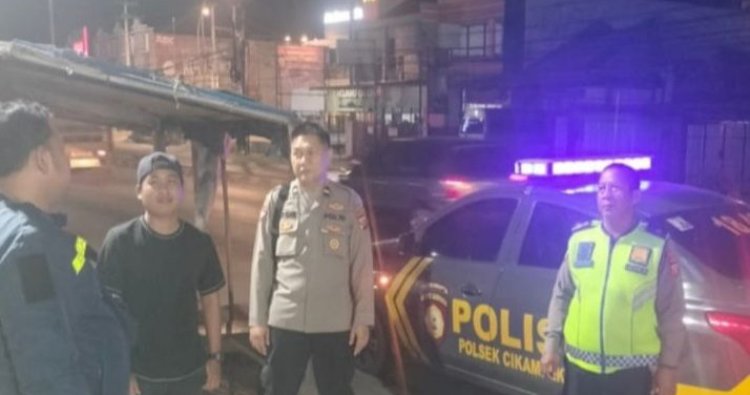Patroli Polsek Cikampek Pantau Jalur Jalan A.Yani Cikampek sembari sambang pesan kantibmas pemuda nongkrong didepan Mie Gacoan Cikampek Dawuan Timur , kegiatan digelar pada 5 Februari 2026 sekira Pukul 03: 30 WIB .