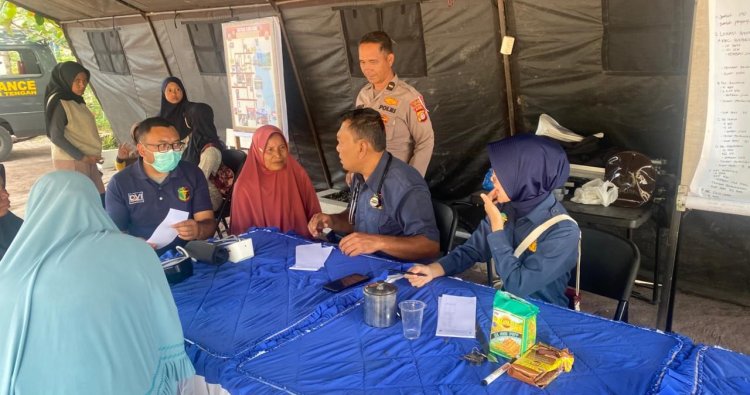 "Kami hadir memberikan pelayanan kesehatan, konsultasi, memberi semangat dan pengobatan gratis kepada masyarakat korban bencana alam, " ujar Kapolres.