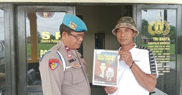 Dengan seksama, Personil Propam Polsek Banyusari sampaikan ke masyarakat perihal sosialisasi WA pelayanan kepolisian tersebut.