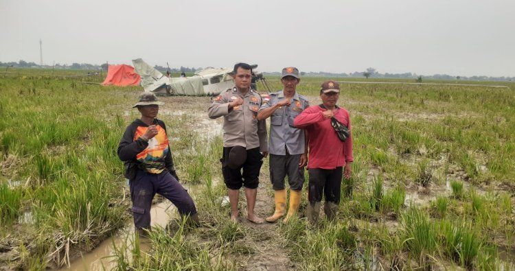 Polsek Cikampek dan Kades Kertawaluya Kawal Langsung Evakuasi Mesin dan Cabin Pesawat GA8 Airvan dari Sawah