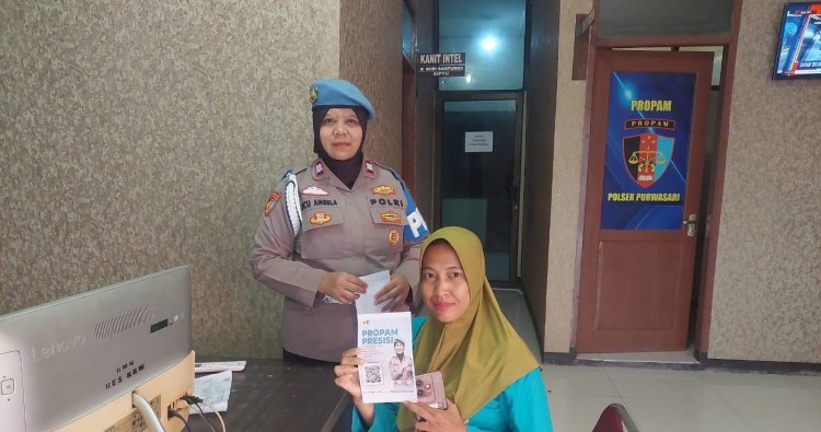 Senin (22/12/2025) personil Polsek Purwasari langsung ke warga memberikan informasi pelayanan pengaduan QR Barcode Propam Mabes Polri.