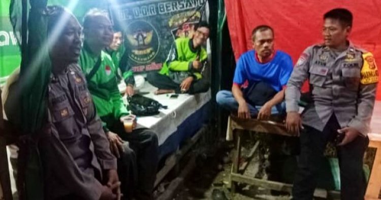 Kegiatan ngawangkong yang dilakukan anggota Polsek Rengasdengklok Aipda Ayub Wahyudin S.H dan Bripka Ghojali Rahman bersama warga di pangkalan Ojol dusun Warudoyong Desa Rengasdengklok Selatan Kec.Rengasdengklok