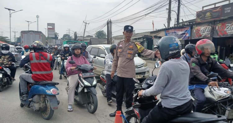 Polres Karawang - Anggota Polsek Telukjambe Timur, Aiptu Diayanto melaksanakan pengaturan lalu lintas di Pertigaan Cidomba Desa Pinayungan, Kecamatan Telukjambe Timur, Kabupaten Karawang, Rabu (5/11/2025).
