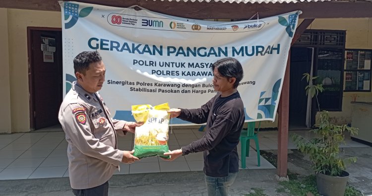 KARAWANG - Kehangatan terasa di Depan Mapolsek Tempuran, Karawang, pada Jumat (20/10/2025), saat jajaran Polsek Tempuran Polres Karawang Polda Jawa Barat menggelar Gerakan Pangan Murah. Kegiatan ini bukan sekadar aksi, melainkan wujud nyata kepedulian untuk meringankan beban masyarakat dalam memenuhi kebutuhan pokok sehari-hari, sekaligus menjadi garda terdepan dalam menjaga kestabilan harga di pasaran.
