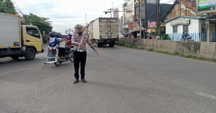 Polres Karawang - Guna mengantisipasi terjadinya kecelakaan lalu lintas (laka lantas) dan kemacetan kendaraan, Unit Lalu Lintas Polsek Klari, Polres Karawang, Bripka Priyanto aktif terus memberikan pelayanan kepada para pengguna jalan, Senin (15/12/2025).
